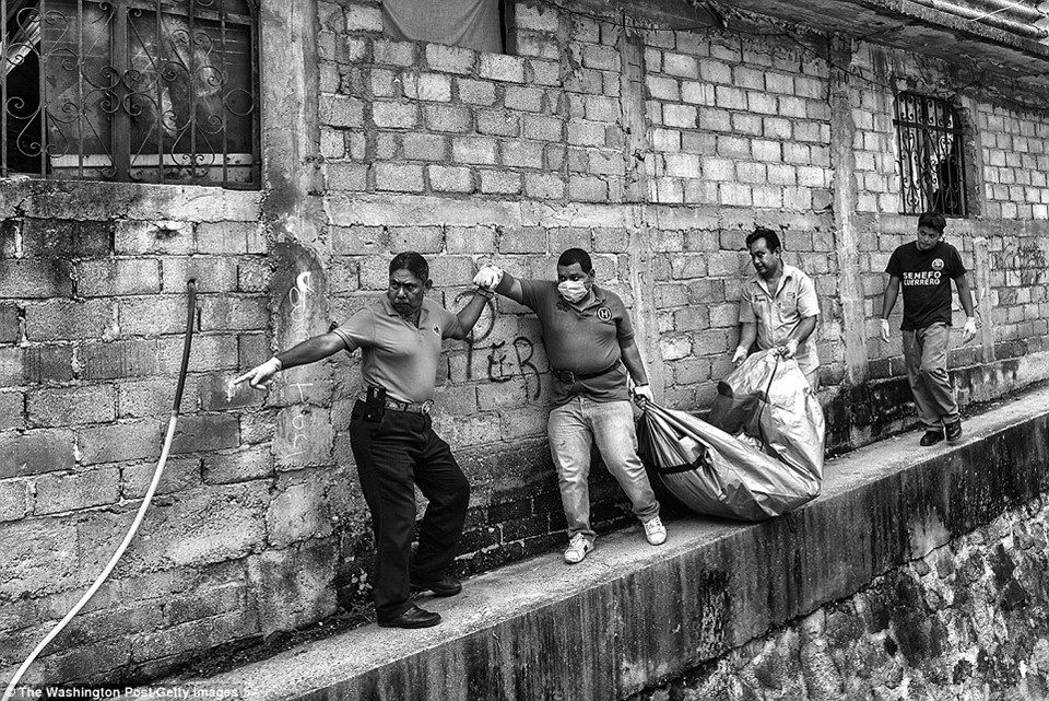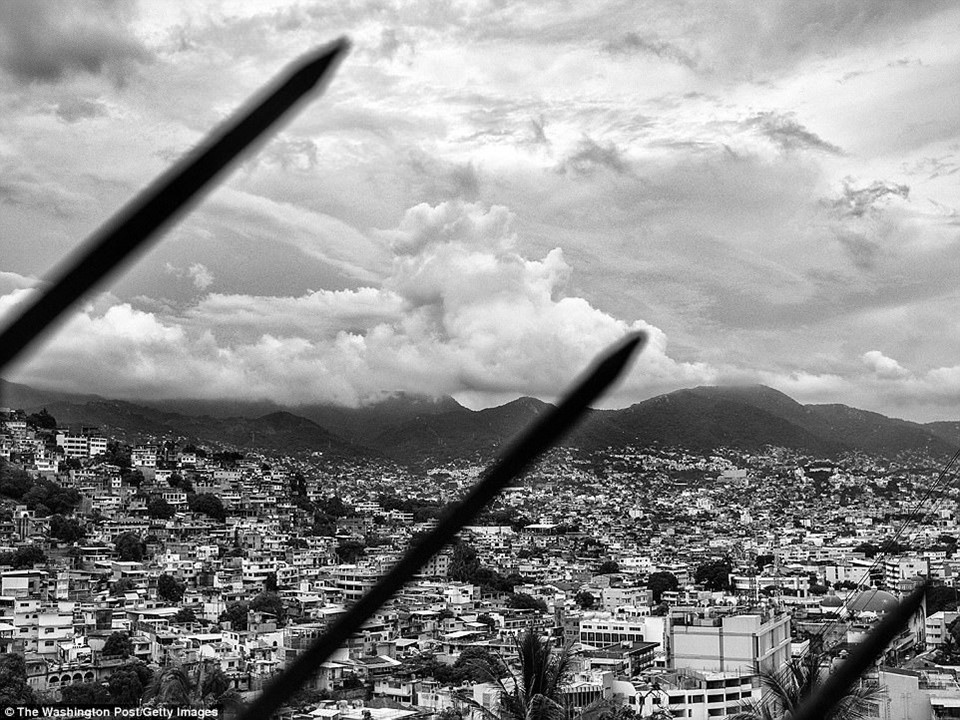 Trải qua nhiều thăng trầm, Acapulco ngày càng chứng kiến nhiều cuộc va chạm giữa cảnh sát và băng đảng ma túy hay những vụ giết người tàn bạo. Trong ảnh, các nhân viên điều tra đang đưa một thi thể được phát hiện ở khu phố nghèo Barranca de la Laja. Nạn nhân không còn nguyên vẹn và bị chôn vùi dưới nền nhà.