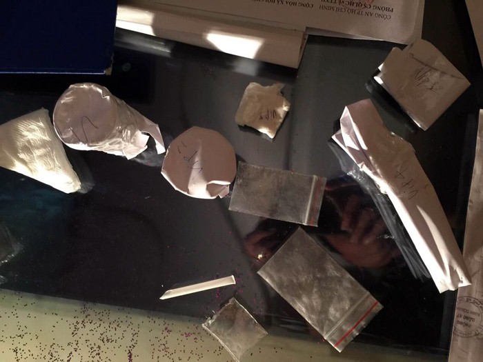 | Những gói nhỏ có bột trắng bên trong nghi là ma túy. |