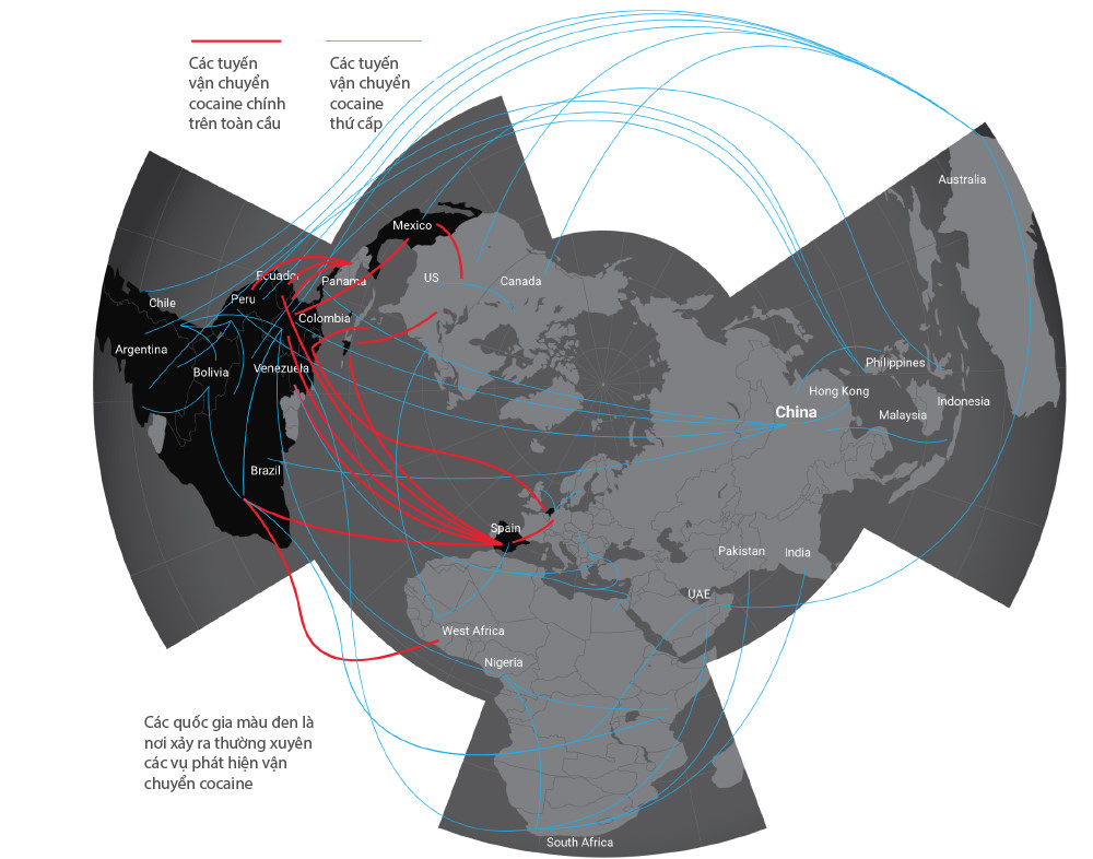 Những tổ chức tội phạm Trung Quốc, những băng đảng ma túy châu Mỹ Latin và những tay buôn lậu người Nigeria đang ngày càng liên kết chặt chẽ để mở rộng mạng lưới buôn bán ma túy quốc tế. Trong khi lượng cocaine chuyển từ Nam Mỹ đến châu Á đang ngày càng tăng, ở chiều ngược lại, các băng đảng Nam Mỹ cũng tích cực thu mua tiền chất hóa học từ Trung Quốc để sản xuất các loại ma túy tổng hợp như methamphetamine (ma túy đá) và fentanyl (chất gây nghiện nhóm opiod) để đáp ứng nhu cầu ngày càng gia tăng ở Bắc Mỹ.