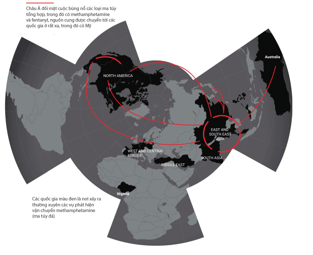 Tuy nhiên theo ông Jeremy Douglas, người đại diện của Văn phòng Liên Hợp Quốc về Ma Túy và Tội phạm ở khu vực châu Á – Thái Bình Dương, có trụ sở tại Bangkok, thị trường châu Á vẫn đang bị thống trị bởi ma túy đá và heroin, đặc biệt là ma túy đá.