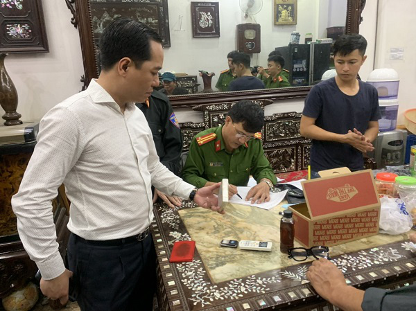 Tiến hành khám xét khẩn cấp nơi ở của Tùng tại số nhà 05/313, đường Lý Bôn, tổ 14 phường Bồ Xuyên, thành phố Thái Bình lực lượng chức năng thu giữ 1 gói heroin trọng lượng 219,7268 gam, 1 bình đá, 1 cân điện tử, 1 súng quân dụng. Tiếp tục khám xét nơi ở thứ 2 của Tùng tại số nhà 41/313, đường Lý Bôn, tổ 14 phường Bồ Xuyên, thành phố Thái Bình, lực lượng chức năng thu giữ thêm 9 gói ma túy tổng hợp trọng lượng 45,2989 gam, giấu trong cốp xe máy.