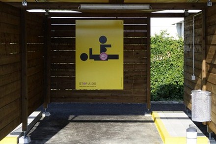 | "Hộp sex" dành cho các tài xế xe ôtô và gái mại dâm có dán tờ rơi khuyến khích dùng bao cao su và cảnh báo về AIDS. Ảnh: EPA |
